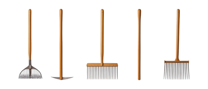 Collection Pack of Vintage Cleaning Tools Antique Brooms Mops and Brushes set against transparent background