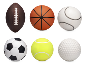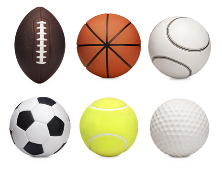 Collection of popular 3d sports balls including football, basketball, tennis, and more