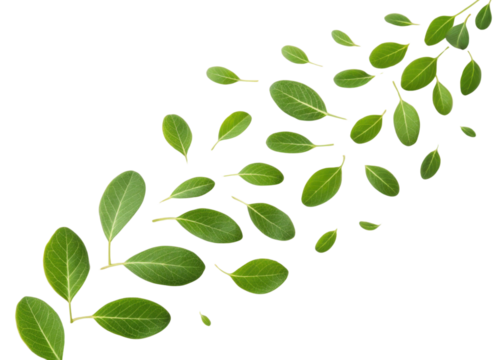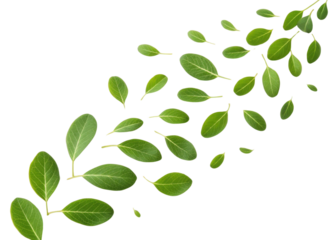 Fresh moringa leaf collection with vibrant green color and natural texture floating on transparent background for healthy concept