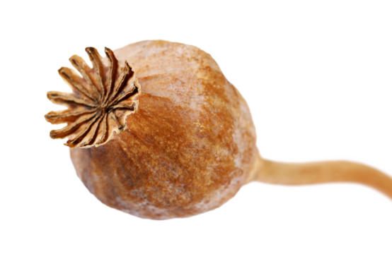 Close up poppy dried box, isolated on white background