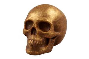 Golden human skull representing death and mortality concept