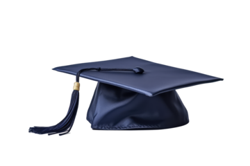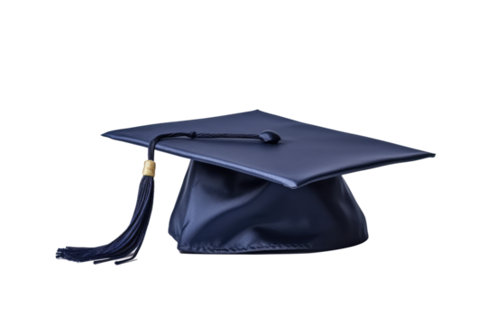 Blue graduation cap with yellow tassel Isolated on White and Transparent Background PNG Image.