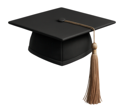 Floating black graduation cap transparent background with gold tassel