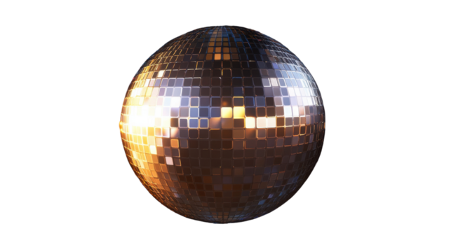 Disco ball reflecting light, symbolizing celebration, party, and retro entertainment. Isolated on transparent background