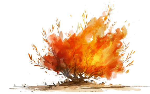 Digital Representation of the Burning Bush Where God Revealed Himself Isolated on Transparent Background