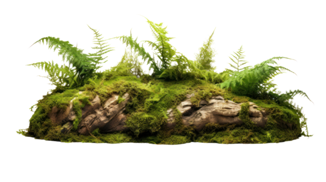 Moss or ferns cover dry trees isolated on transparent and white background.PNG image.