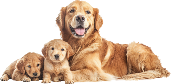Golden Retriever mom with pups