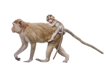 Koala with baby on its back isolated on a transparent background