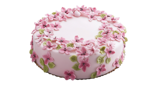 • A Mother’s Day cake with a pink floral design, isolated on white background in HD