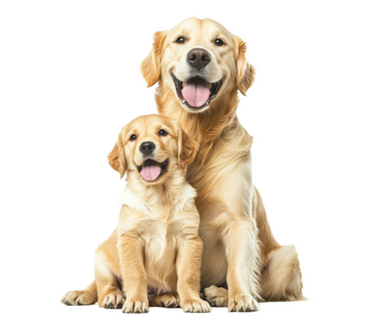 Golden Retriever Family: A heartwarming image of a mother dog and her puppy , isolated on white background PNG