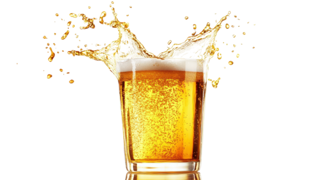Golden Beer Splash in a Clear Glass isolated on a Transparent or white Background