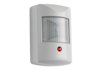 A white motion sensor with a red indicator light, isolated on a transparent background