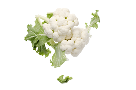 Falling cauliflower isolated on white or transparent background. Generative AI.
