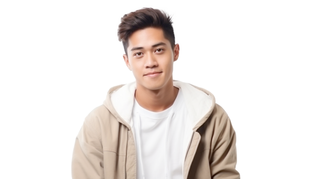 Ambitious Southeast Asian man, ethnic groups, white background, transparent background  Generative AI