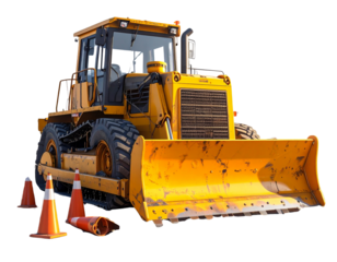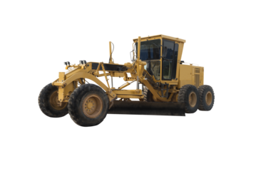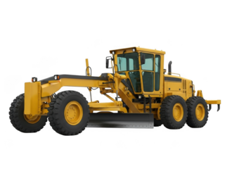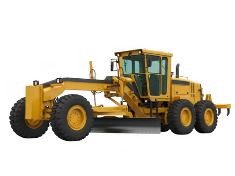 Vibrant yellow grader machinery showcasing intricate engineering isolated on transparent backdrop