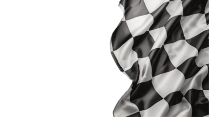Checkered flag waving in the wind on a transparent background, symbolizing motorsport, victory, and the end of a race