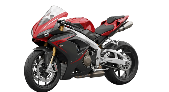 Red and black sports motorcycle isolated PNG with Transparent Background