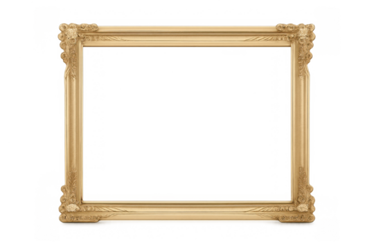 Gold antique ornate frame with baroque style carving on a transparent background for art and design concepts