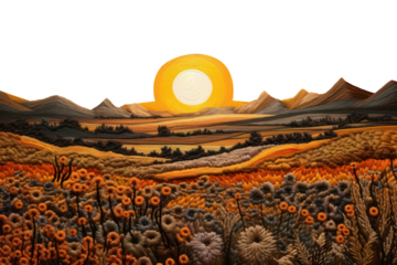 PNG Embroidery background of a sunset backgrounds landscape outdoors.