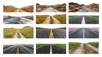 Rural road and scenic landscape with transparent background
