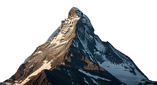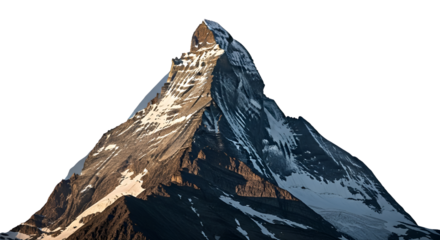 Matterhorn mountain peak covered with snow isolated PNG with Transparent Background