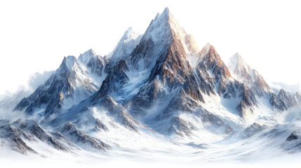 Majestic snow-capped peaks mountain range nature landscape clear sky. Isolated on transparent background, png.