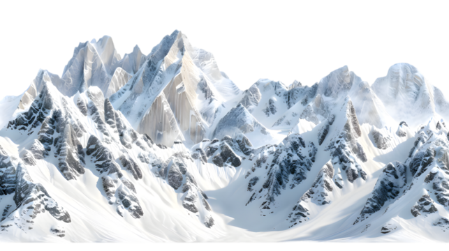 Winter mountain landscape isolated on a transparent background, with options for PNG, cutout, or clipping path.