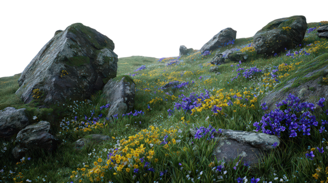 Rock formation depicting a rustic stone cliff, steep mountainside, and textured surface. Transparent background