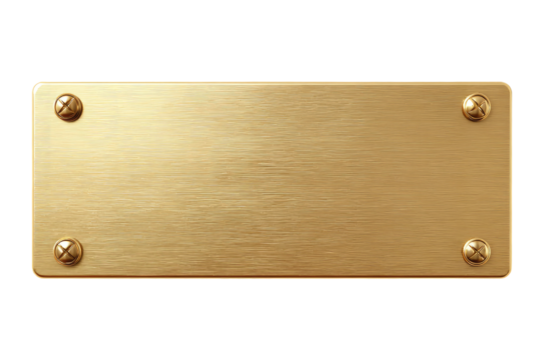 Golden Blank Plaque with Screws isolated on transparent background Remove png, Clipping Path, pen tool