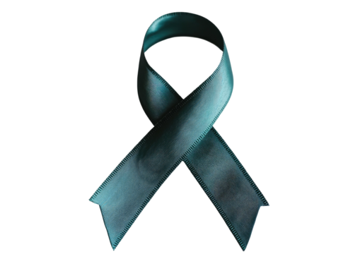 Teal ribbon symbolic support emblem on a solid black background