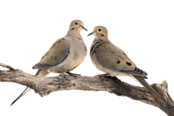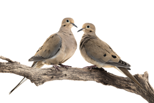 Two mourning doves perched on a branch.
