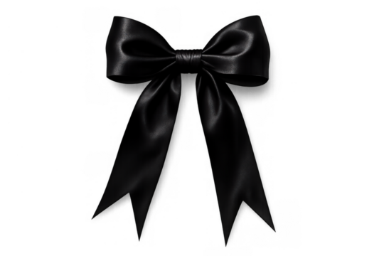Elegant black satin ribbon bow isolated PNG, mourning symbol for remembrance and memorial services on transparent background