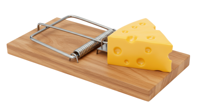 Isolated Mousetrap with Cheese