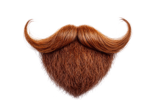A full, curly, grey mustache on a solid transparent background, perfect for adding to portraits or designs