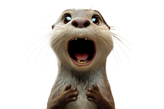 Close-up of a yawning hippopotamus with mouth wide open, showing large teeth and textured skin on a white background. Concept of wildlife and nature. Ai generative