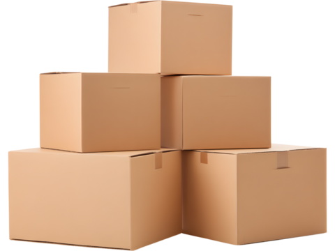 Stack of brown cardboard boxes isolated on transparent background, perfect for packaging and delivery visuals..