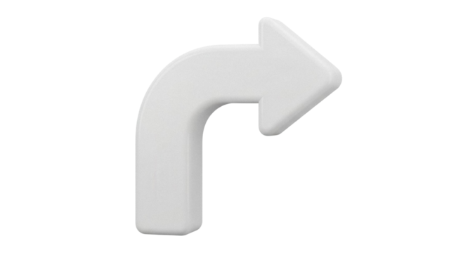 Right turn arrow PNG isolated on transparent background, 3D rendering navigation symbol for direction and wayfinding