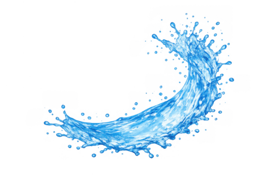 Blue water splash moving in a dynamic circular wave, creating a fresh liquid ripple effect with droplets, transparent background