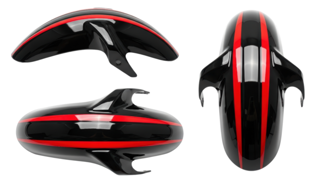 Black Motorcycle Fender with Red Racing Stripe Isolated on White