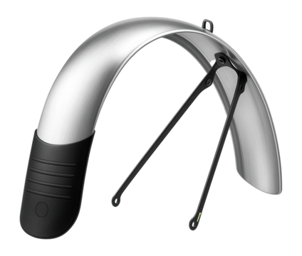 Polished aluminum front fender with rubber mudguard for urban commuting