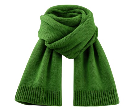 Warm green knitted scarf, cozy winter fashion accessory for cold weather. beautiful wool object isolated on transparency background, perfect for personal style and comfort