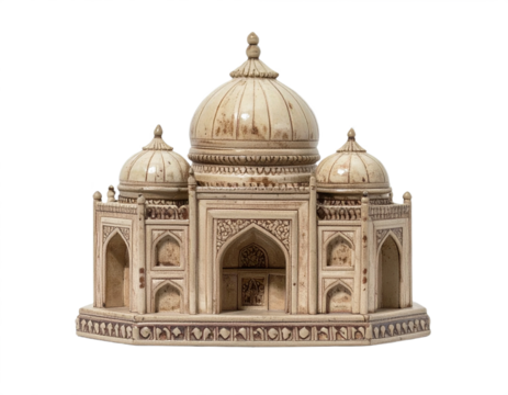 Realistic Miniature Taj Mahal Model with Detailed Domes, Isolated on Transparent Background