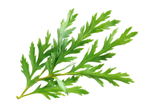 Green leaves of mugwort (Artemisia vulgaris), a medicinal and culinary herb, isolated on transparent background