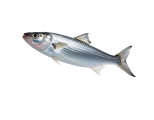 A mullet fish isolated on transparent background, showcasing its silver and striped body, fins, and aquatic nature, representing marine wildlife and the beauty of the ocean