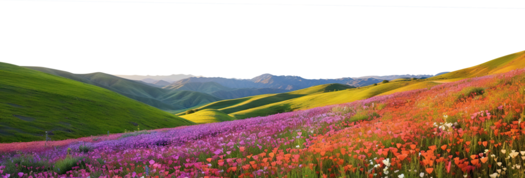 Vibrant botanical bouquet of daisies and pink blooms on transparent