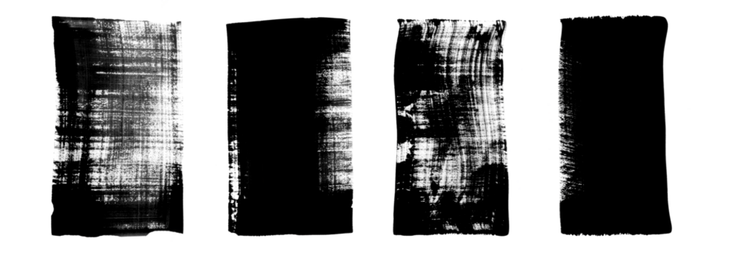 Set of 4 grunge rolled ink stamp textures handmade with brayer. Letterpress vintage rough irregular rectangle vertical background. Linocut relief printing shapes  illustration ON  transparent backdrop