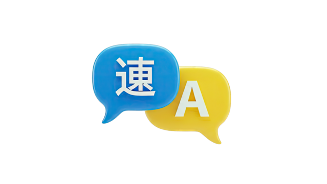 Translation Speech Bubbles: Japanese Character and Latin Letter 'A'