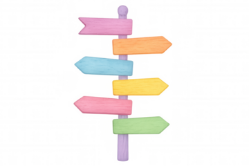 Wooden signpost with colorful arrows pointing in multiple directions, isolated on transparent background, ideal for travel and decision-making concepts