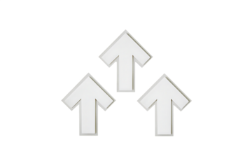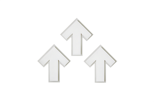 Three white arrows pointing upwards isolated on white background
