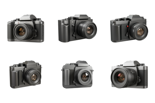 Capture the Moment: A professional digital camera, presented in multiple angles, isolated and ready for capturing life's beautiful moments.